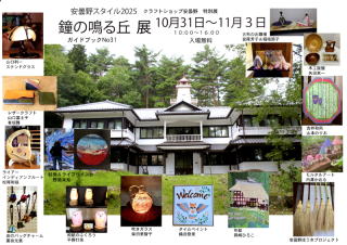 安曇野スタイル2025、会場番号31、鐘の鳴る丘集会所で、クラフトショップ安曇野特別展を開催。10月31日(金)~11月3日(祝)、10:00~16:00 入場無料 コンサート、パフォーマンスもあります。安曇野スタイル巡りに欠かせないスポットです。 会場番号50、クラフトショップ安曇野では日替わりで作家展開催。ぜひお越しください。